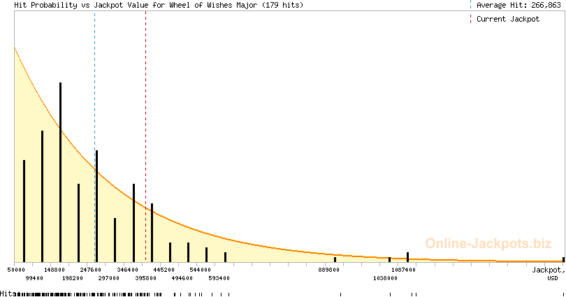 The WowPot Major jackpot (also called Wheel of Wishes Major) has a minimum value of £/$50,000 and quickly grows with players' bets on