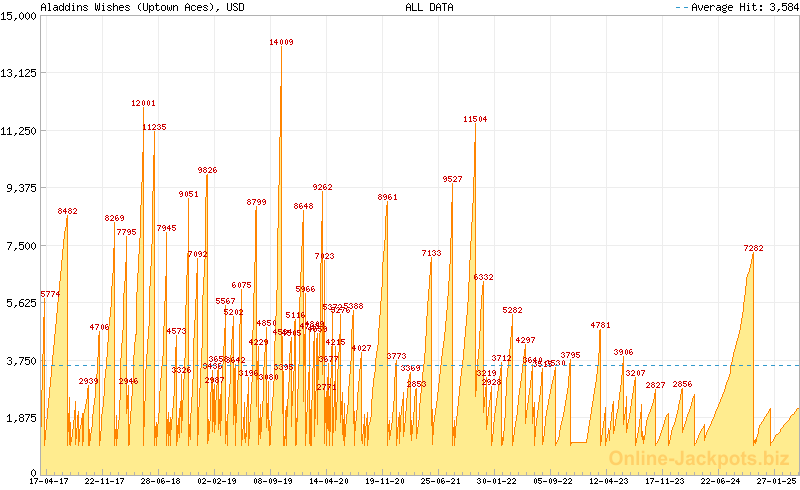 Aladdins Wishes is a 5-reel, 20 payline slot game with a random progressive jackpot. The game with a particular jackpot should be played at the corresponding online casino (see links).