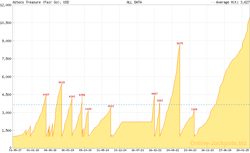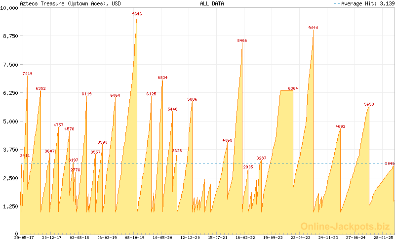Aztecs Treasure is a 5-reel, 25 payline slot game with a random progressive jackpot. The game with a particular jackpot should be played at the corresponding online casino (see links).