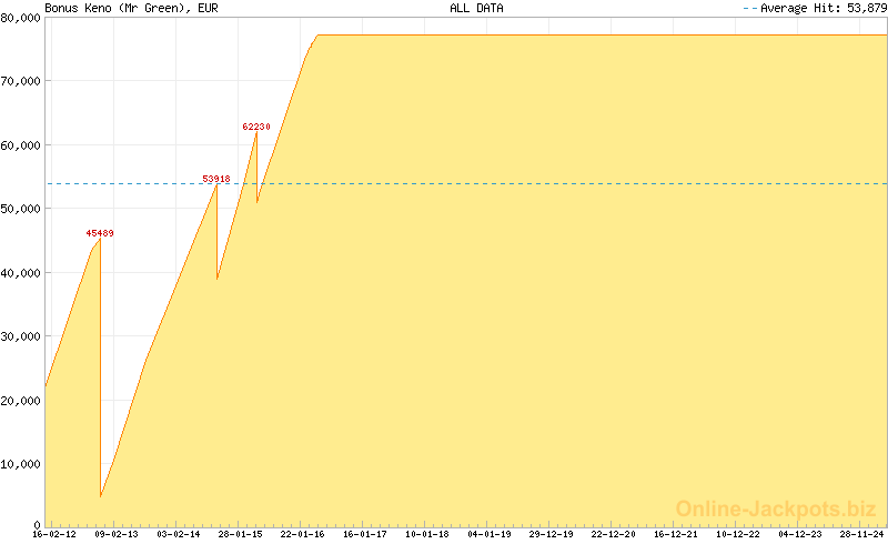 Bonus Keno is a number game with Bonus rounds and growing Jackpot. Pick 2 to 10 numbers of the 20 numbers drawn by the game to win in the game. The winning amount in a classic Keno round is calculated based on how many numbers you pick, the number of HITs, and the amount of your bet. The minimum number of hits required to win varies depending on the numbers you pick. The maximum number of joker symbols that can be revealed in a game round is 1.