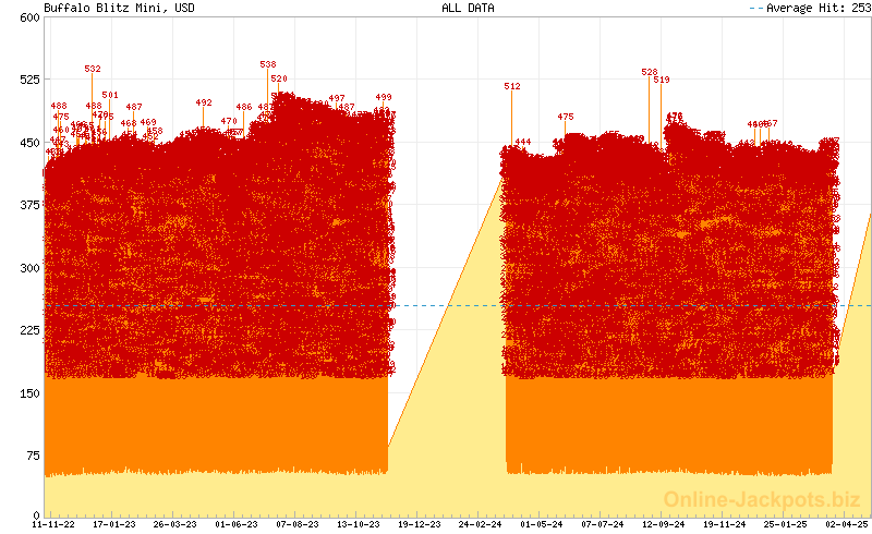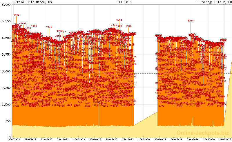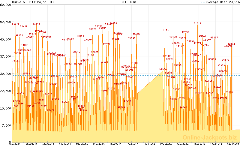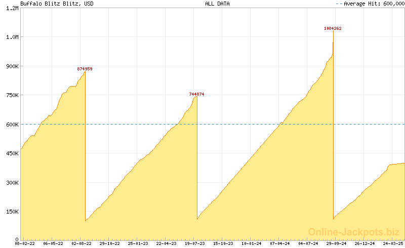 | Last Hits: | $1,084,262 on 2024-09-20 (Buffalo Blitz Blitz) $42,411 on 2025-03-17 (Buffalo Blitz Major) $4,352 on 2025-03-17 (Buffalo Blitz Minor) $215 on 2025-03-17 (Buffalo Blitz Mini) |