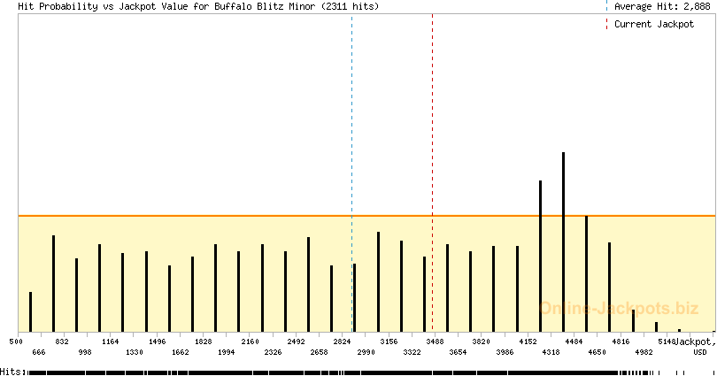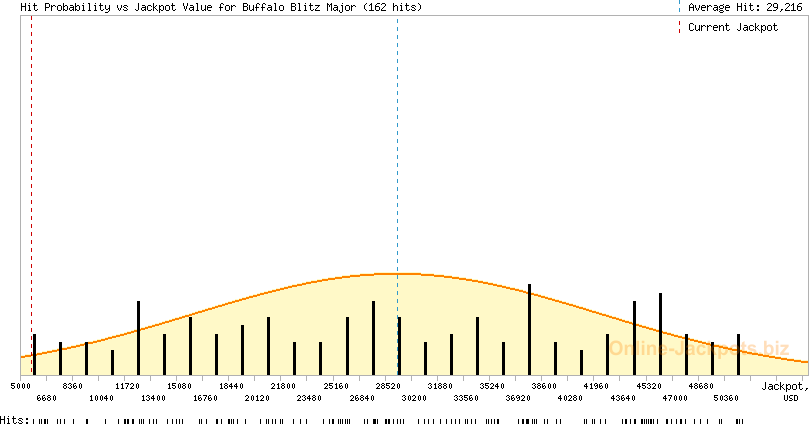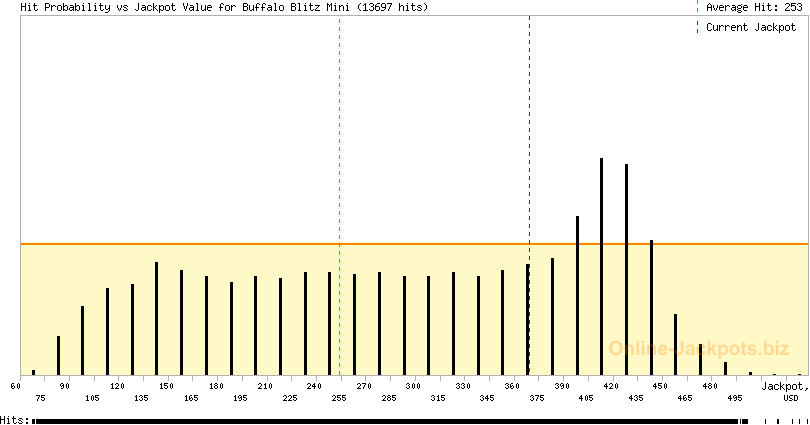 | Jackpot Types: | 3 (Gaussian bell) (Buffalo Blitz Major) 5 (flat range) (Buffalo Blitz Minor) 5 (flat range) (Buffalo Blitz Mini) |