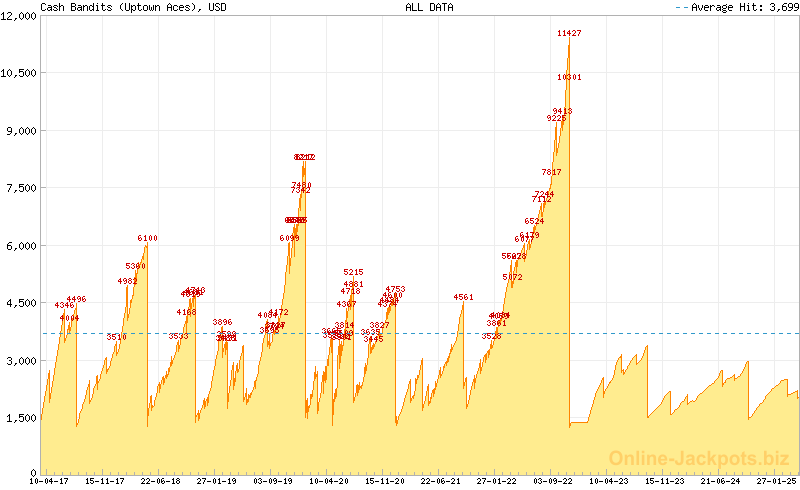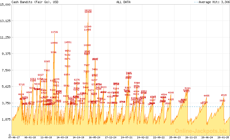 Cash Bandits is a 5-reel, 25 payline slot game with 2 random progressive jackpots. The game with a particular jackpot should be played at the corresponding online casino (see links).