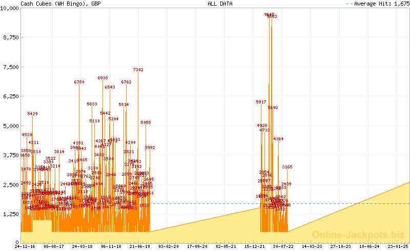 Cash Cubes progressive jackpot can be won in 36-Ball Cash Cubes Bingo room. Starting at £500 and keeps on growing every time bingo players at various Bingo Rooms buys tickets. One lucky winner will be causing an avalanche when they call full house on 18 balls or less and take the prize.
