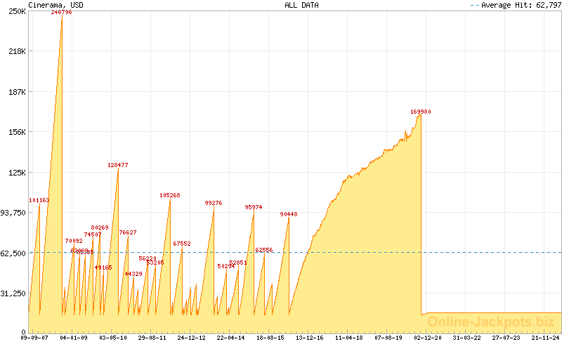 Average Cinerama jackpot hits at about $50,000.00 while the highest ever win is