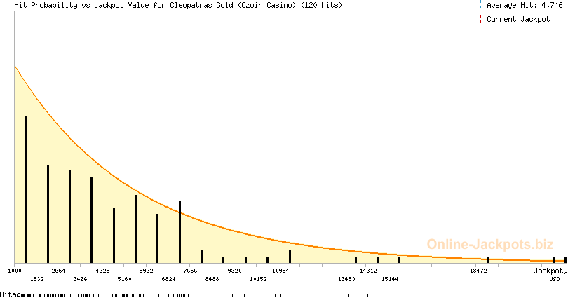 | Avg. Hit Times: | 2 years 11 months (Cleopatras Gold) 10 days 16 hours (SlotoCash) 4 days 7 hours (Fair Go) 20 days 18 hours (SlotsPlus) 20 days 18 hours (Ozwin Casino) |