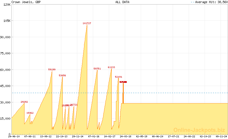 The jackpot is initially funded at £5,000 and each day it increases based on stakes for the previous day. Stakes from other networked Bingo Rooms will contribute to the same pot which has the same chance of being won on all networked Bingo Rooms. The casino can add other games to the networked progressive jackpot pot. Right now this jackpot can be hit on the Crown Jewels (Crystal Room) at random.