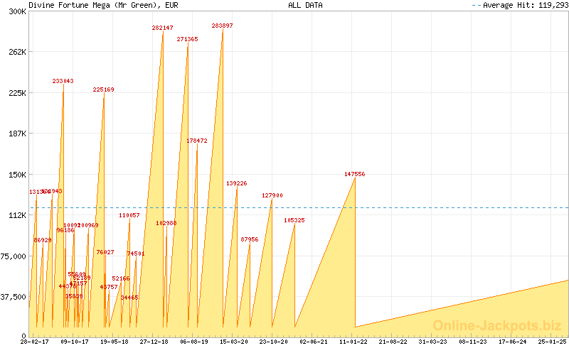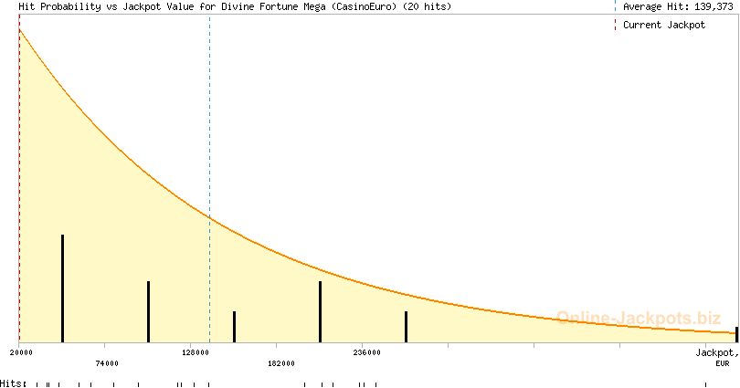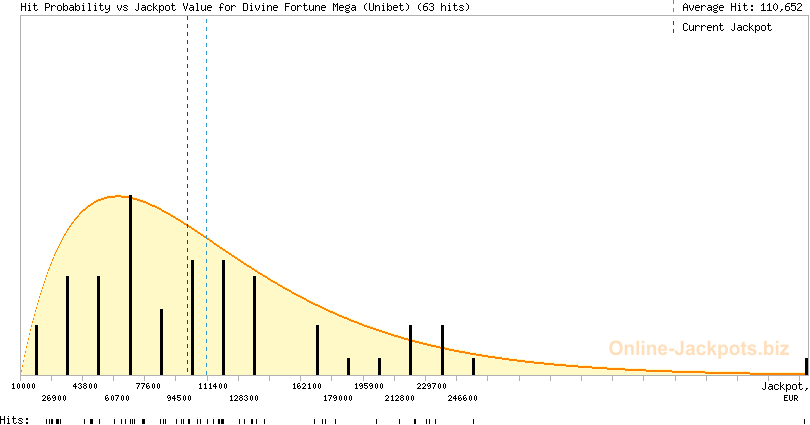 | Avg. Hit Times: | 6 months 25 days (Mega Betsafe) 25 days 0 hours (Mega Paf) 15 days 15 hours (Mega Unibet) 3 months 8 days (Mega NordicBet) 2 months 25 days (Mega CasinoEuro) 3 months 5 days (Mega CasinoLuck) 2 months 11 days (Mega Cherry) 4 months 13 days (Mega RedBet) 1 month 20 days (Mega LeoVegas) 3 months 1 day (Mega Unibet UK) 1 month 27 days (Mega Betsson) 2 months 0 days (Mega Mr Green) 3 months 5 days (Mega EUCasino) 2 months 14 days (Mega EnergyCasino) 3 months 5 days (Mega Magic Red) 2 months 0 days (Mega Party Casino) 2 months 0 days (Mega 1XBet) |