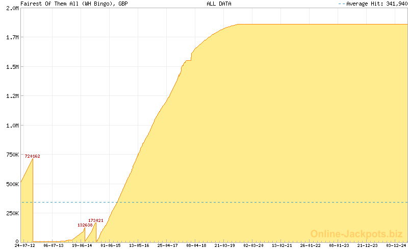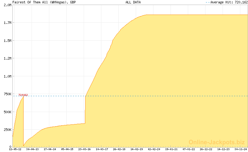 | Last Hits: | £720,162 on 2012-11-02 (WHVegas) £173,021 on 2014-12-14 (WH Bingo) €604,958 on 2017-04-13 (Unibet) $970,528 on 2024-10-09 (Playtech) $465,326 on 2017-02-17 (888Casino) |