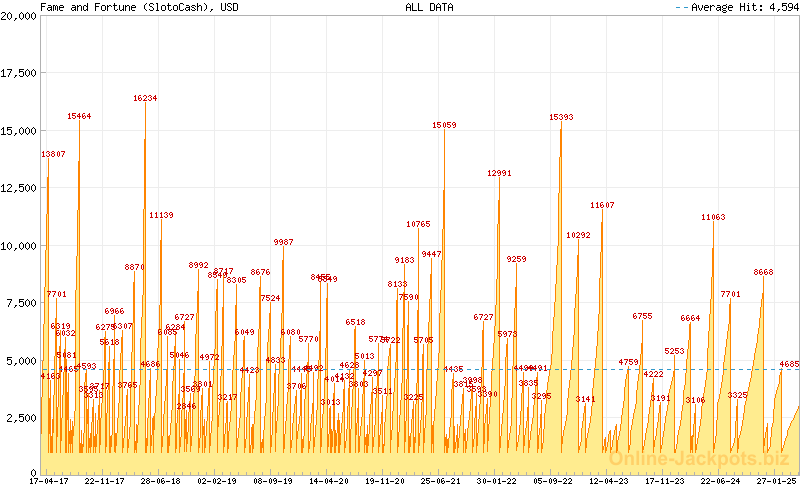 Fame and Fortune is a 5-reel, 20 payline slot game with a random progressive jackpot. The game with a particular jackpot should be played at the corresponding online casino (see links).