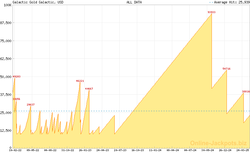 | Average Hits: | $25,366.95 (Galactic Gold Galactic) (36 hits) $4,017.33 (Galactic Gold Galaxy) (145 hits) $233.94 (Galactic Gold Grand) (2225 hits) |
