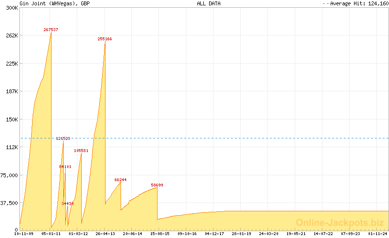 | Average Hits: | $114,154.85 (888Casino) (30 hits) £124,160.51 (WHVegas) (8 hits) |