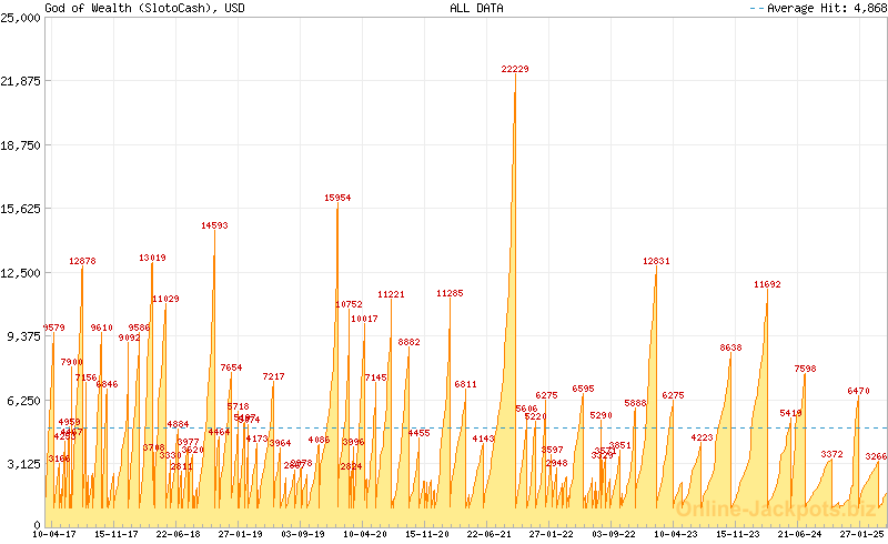God of Wealth is a 5-reel, 25 payline slot game with a random progressive jackpot. The game with a particular jackpot should be played at the corresponding online casino (see links).