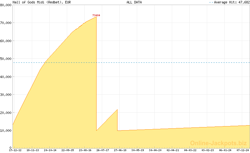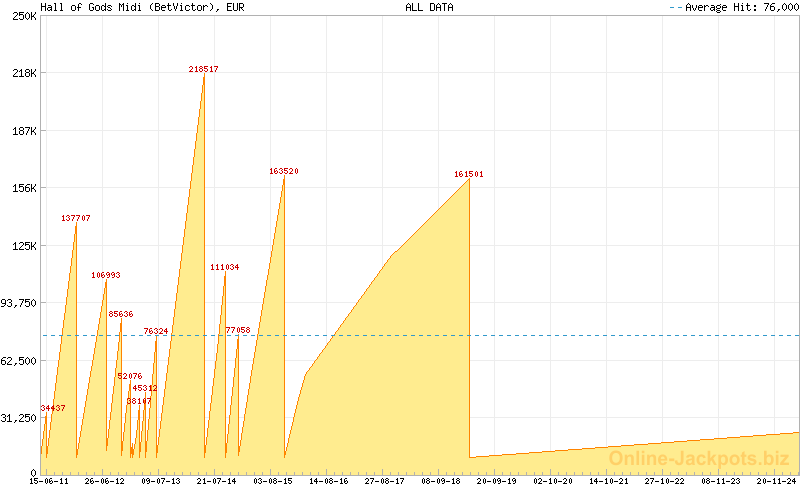 The largest ever hit Hall of Gods Mega jackpot of £5,450,863.45 was hit by a Scottish Fisherman on October 28, 2013 at BetVictor Casino. The Hall of Gods Mega jackpot is the same across all Net Entertainment powered casinos. Midi and Mini has its own pools on every site, so visit the corresponding online casino to play for the highest grown jackpot(s). Keep the Gods of Valhall on your side and you may walk off with one of the progressive jackpots already tonight.