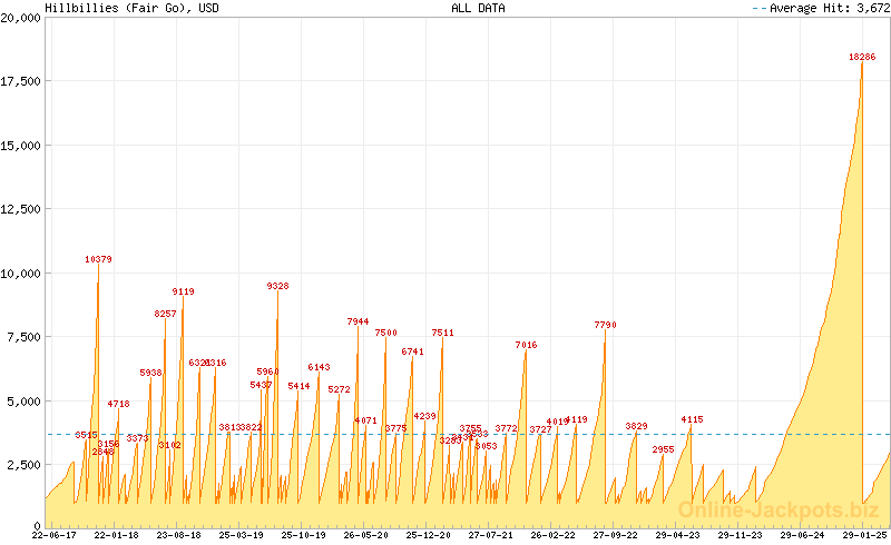 Hillbillies is a 5-reel, 20 payline slot game with a random progressive jackpot. The game with a particular jackpot should be played at the corresponding online casino (see links).