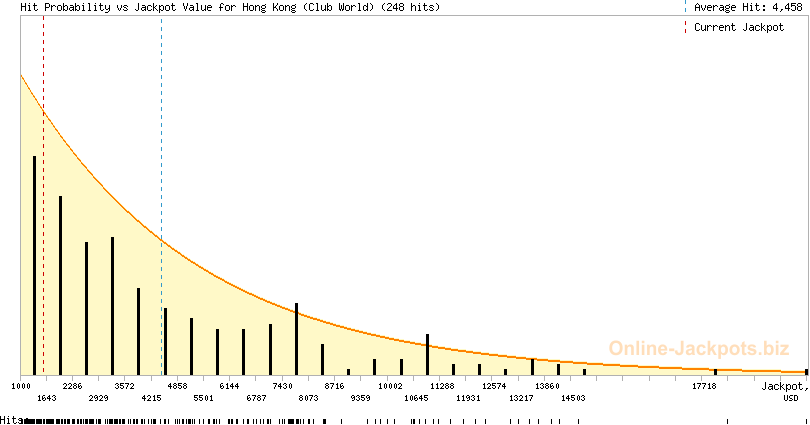 Hong Kong (Club World) Jackpot is a pooled progressive jackpot that is hit randomly. The jackpot can be won at random, on any paid spin. To increase your chances of winning the Hong Kong jackpot you need to increase your wagers and play more time, providing the jackpot is big enough to deliver you the best odds.