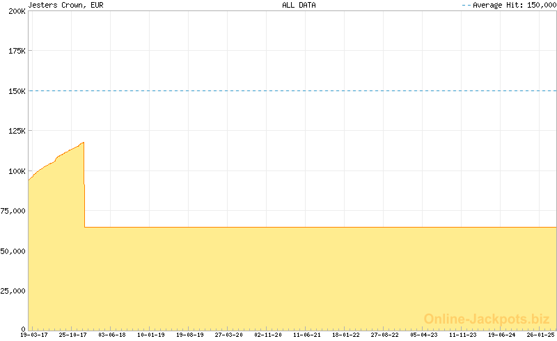 When 20 Jokers appear you win the progressive jackpot in Jester's Crown! In the basic game you receive 50% of the jackpot if you place the maximum bet, during the free games you get 100% (the exact amount of the jackpot win is displayed above the playing field). If you bet less than the maximum amount you receive a proportionate win.