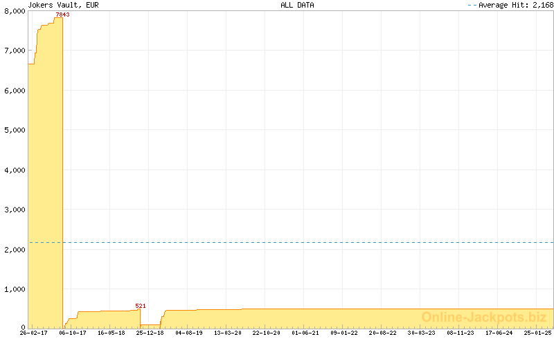 The amount of the progressive jackpot increases with each bet made by every player at Joker's Vault Poker until a lucky player cracks open the vault to win all or part of its contents. A player who has played with the maximum denomination (€5) wins all of the jackpot. A player who has played with less than the maximum wins a proportional amount.