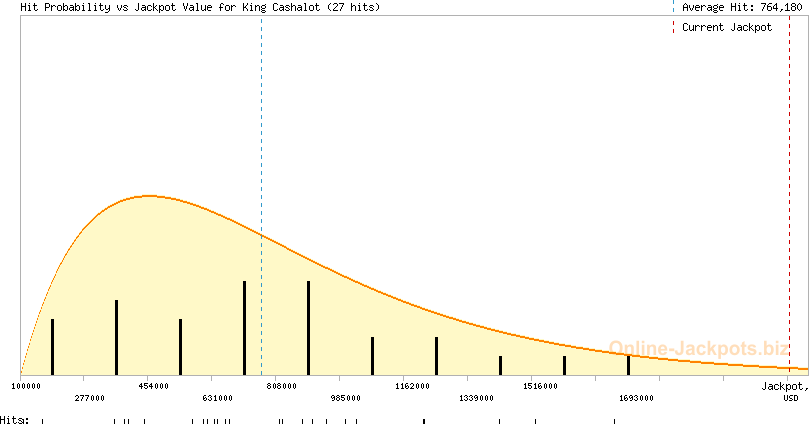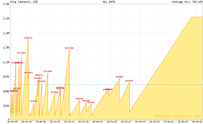 The largest King Cashalot progressive jackpot was won by Tim F. who has hit $1,218,306.82 on September 14, 2005 at Jackpot City online casino. Another winner - Karen K - hit a whopping $946,886.05 at 7 Sultans online casino on February 21, 2008. See all King Cashalot winners stories here.