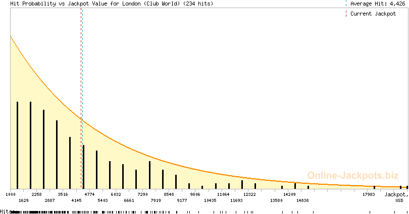 London (Club World) Jackpot is a pooled progressive jackpot that is hit randomly. The jackpot can be won at random, on any paid spin. To increase your chances of winning the London jackpot you need to increase your wagers and play more time, providing the jackpot is big enough to deliver you the best odds.
