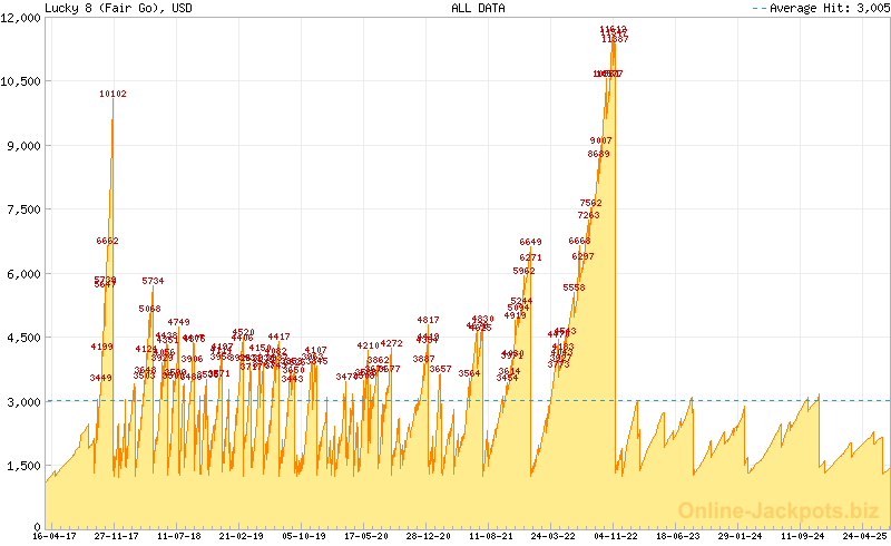 Lucky 8 is a 5-reel, 25 payline slot game with 2 random progressive jackpots. The game with a particular jackpot should be played at the corresponding online casino (see links).