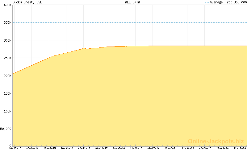 The Jackpot is awarded corresponding to the color that is indicated by the pointer. The jackpot is reset to its base value if 100% of the jackpot is awarded. The reset value (seed) of the Lucky Chest Jackpot is: $200,000.