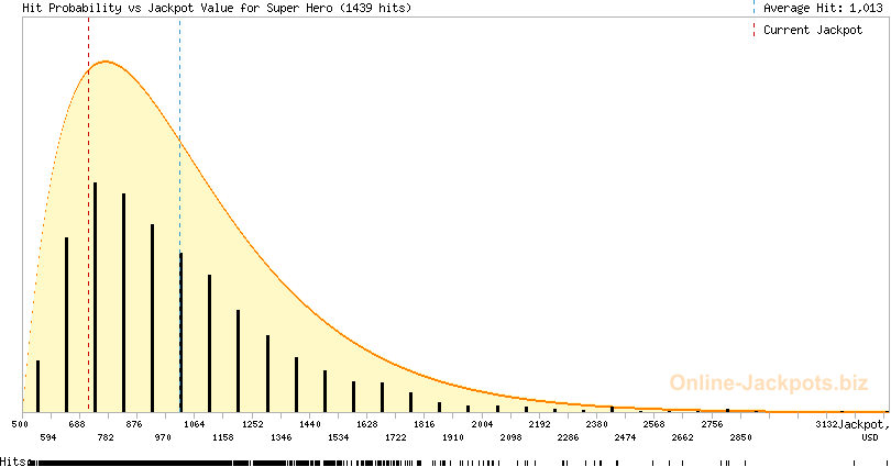 | Average Hits: | $8,995.05 (Marvel Hero Slots) (651 hits) $1,013.38 (Super Hero) (1424 hits) |