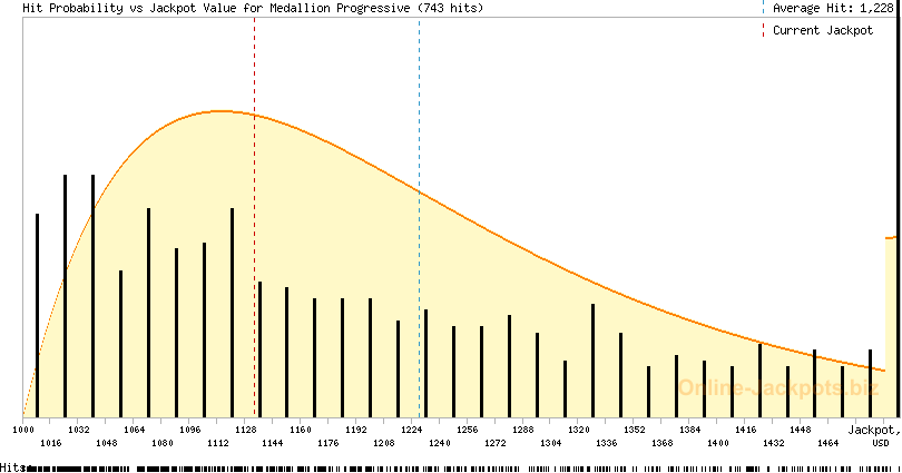 Depending on you bet level you need from 1 to 5 Medalions to hit the Progressive - see rules below. Betting $2.50 per line ($100.00 per spin)