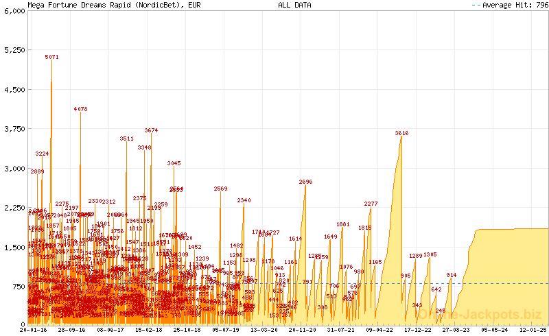 | Average Hits: | €3,746,482.46 (Mega) (31 hits) £59,300.73 (Major) (255 hits) £707.86 (Rapid Betsson) (2583 hits) £673.46 (Rapid Betsafe) (861 hits) €796.75 (Rapid NordicBet) (769 hits) €794.12 (Rapid CasinoEuro) (853 hits) €797.17 (Rapid Paf) (2012 hits) €842.03 (Rapid Unibet) (1338 hits) |