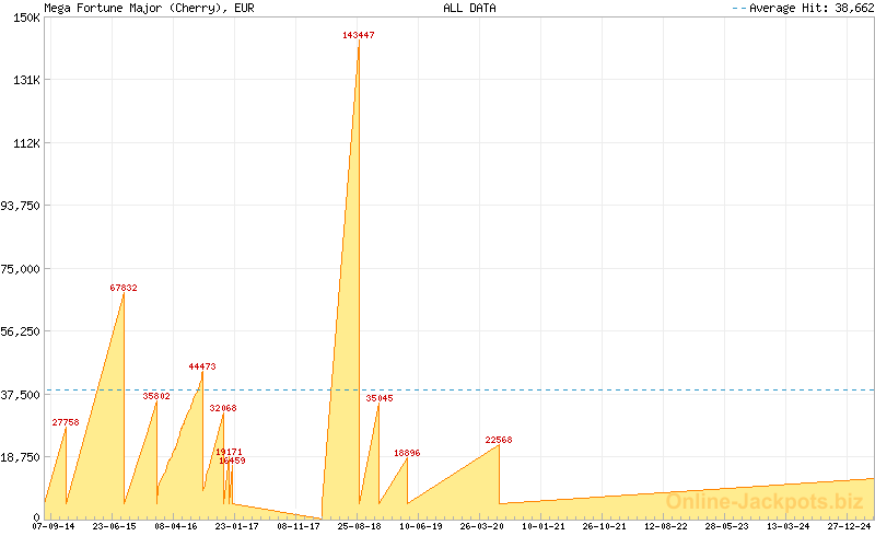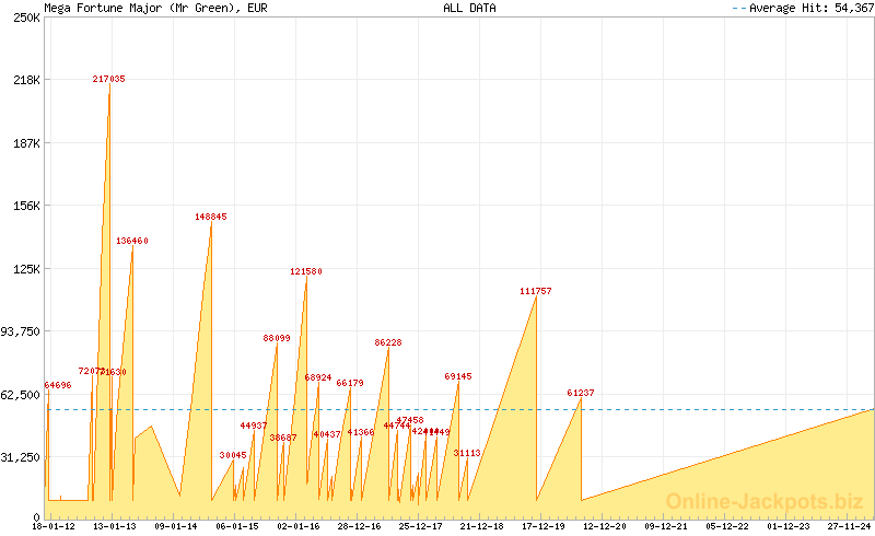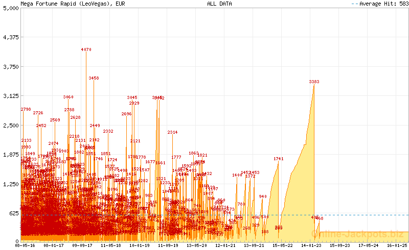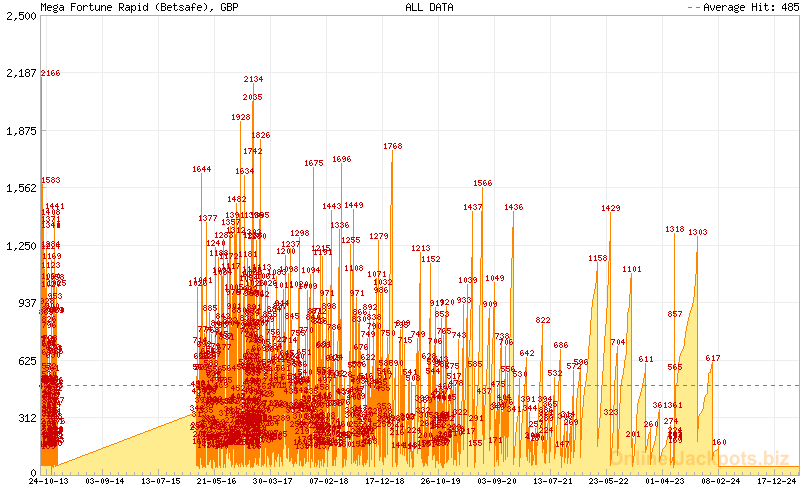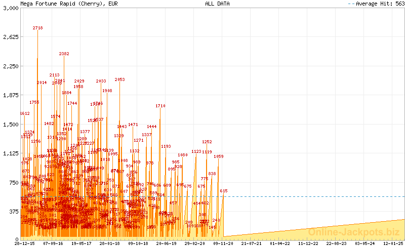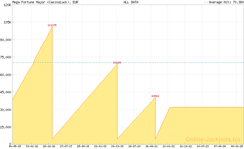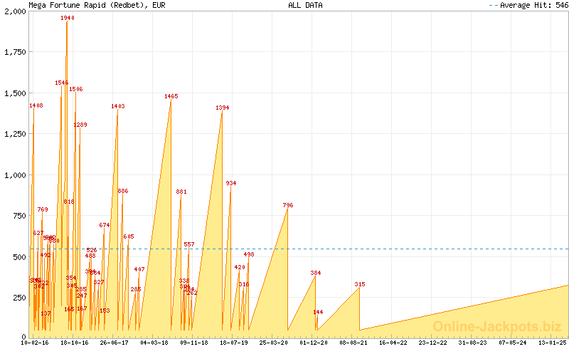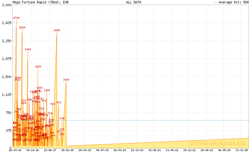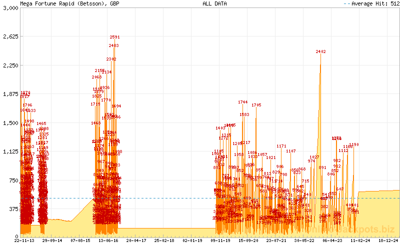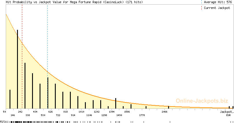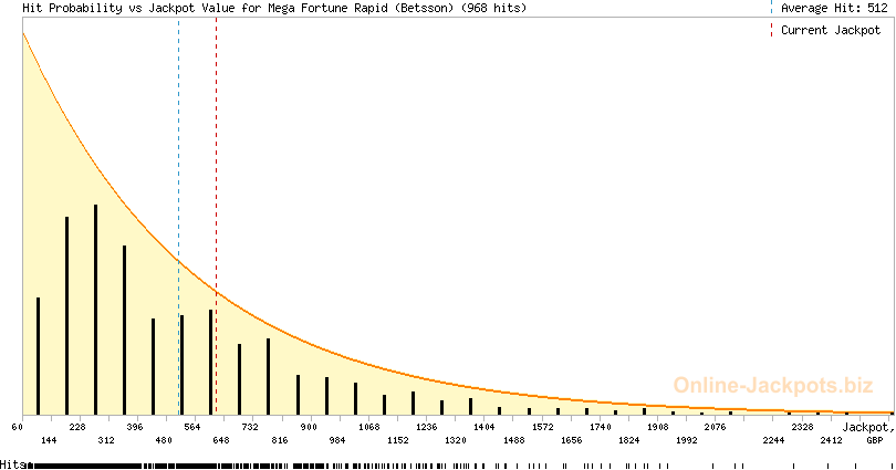 | Avg. Hit Times: | 2 months 22 days (Mega) 1 month 1 day (Major Betsson) 1 month 8 days (Major Betsafe) 8 hours 38 mins (Rapid Betsson) 10 hours 10 mins (Rapid Betsafe) 6 months 5 days (Major Cherry) 3 days 4 hours (Rapid Cherry) 2 months 25 days (Major Mr Green) 16 hours 5 mins (Rapid Mr Green) 1 year 5 months (Major CasinoLuck) 5 days 3 hours (Rapid CasinoLuck) 5 days 9 hours (Rapid Redbet) 1 month 19 days (Major LeoVegas) 10 hours 7 mins (Rapid LeoVegas) 11 months 18 days (Major EUCasino) 7 days 13 hours (Rapid EUCasino) 4 months 2 days (Major EnergyCasino) 7 days 15 hours (Rapid EnergyCasino) 2 months 14 days (Major Party Casino) 7 days 12 hours (Rapid Party Casino) 2 months 7 days (Major CasinoEuro) 1 day 17 hours (Rapid CasinoEuro) 2 months 7 days (Major Paf) 1 day 17 hours (Rapid Paf) 2 months 7 days (Major NordicBet) 1 day 17 hours (Rapid NordicBet) 2 months 28 days (Major Unibet) 6 days 14 hours (Rapid Unibet) 8 months 12 days (Major InterCasino) 20 days 3 hours (Rapid InterCasino) |