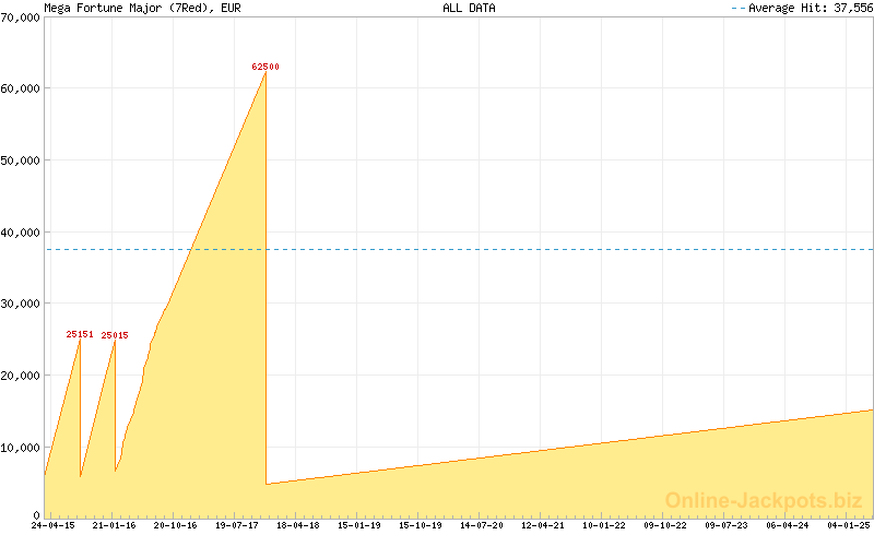 There are 3 different progressive jackpots in Mega Fortune: Mega, Major & Rapid with the minimum values of €250,000, €5,000, and €50, correspondingly. The huge Mega jackpot is offered across the NetEnt network of online casino sites, while smaller jackpots have their own pools on each of the gaming sites. The biggest ever hit Mega Fortune jackpot of €17,861,813.00 was hit by Finnish panter on January 20, 2013 at Paf.
