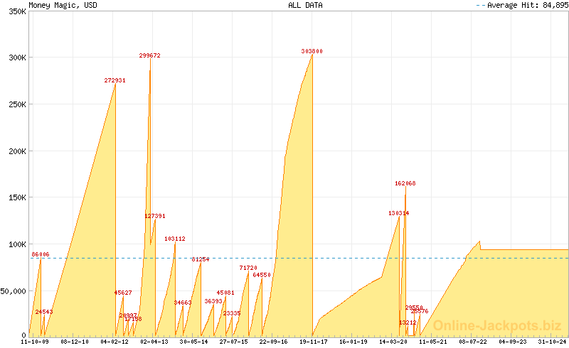 The biggest Money Magic progressive jackpot of $299,672.61 was hit on February 25th, 2013.