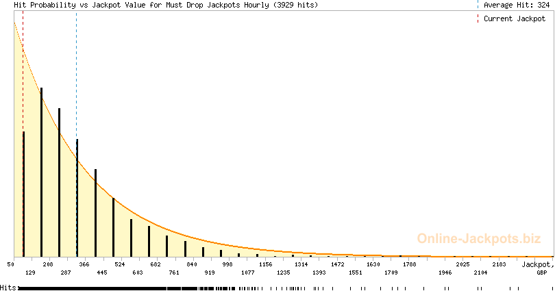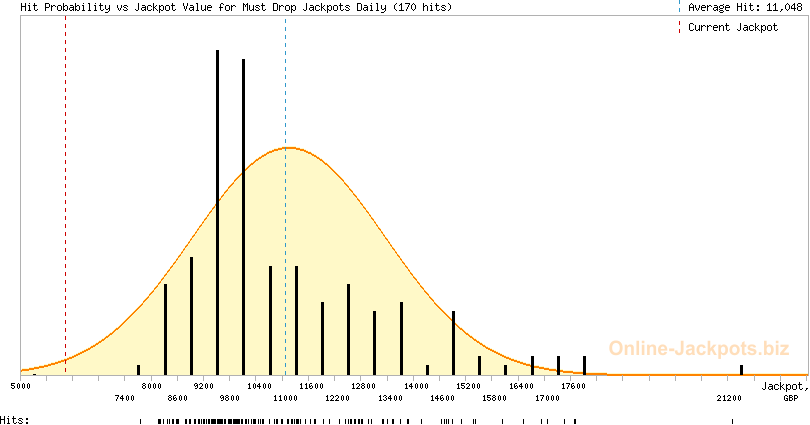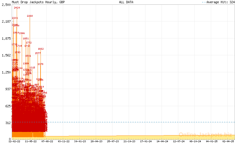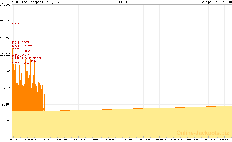 | Average Hits: | £240,000.00 (Must Drop Jackpots Mega) (expected) £11,048.46 (Must Drop Jackpots Daily) (170 hits) £324.09 (Must Drop Jackpots Hourly) (3929 hits) |
