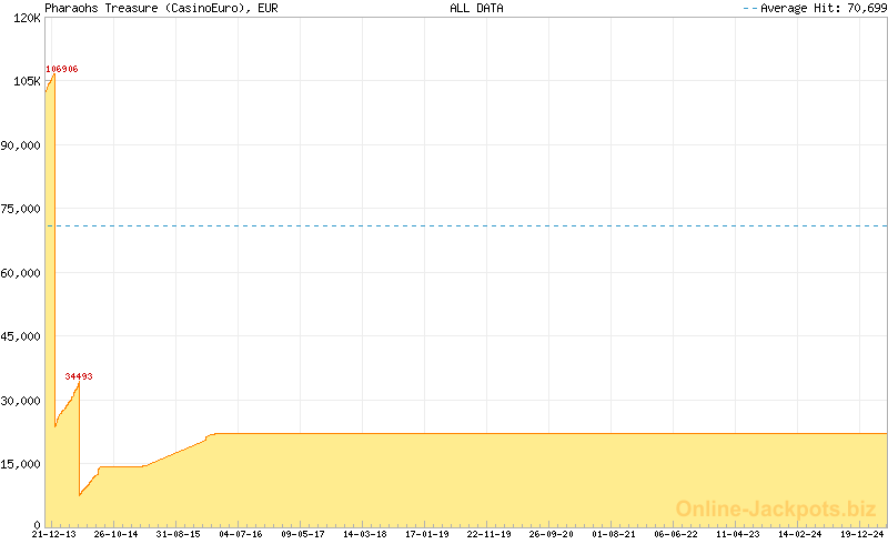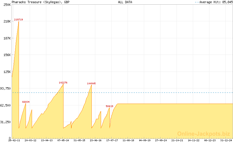 The largest ever hit Pharaohs Treasure jackpot of £252,392.58 was hit by UK Player Sandra on January 24, 2011 at William Hill Vegas. Every casino has its own pools of the Pharaohs Treasure jackpots, so visit the corresponding casino site to play for the highest scored jackpot. The RTP for this slot machine is very high - up to 97.5% and more.