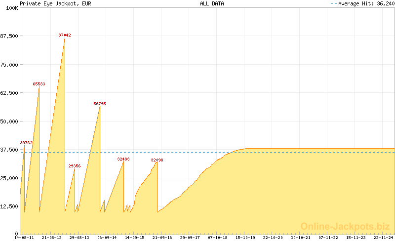 Private Eye Jackpot is a slot machine with 5 reels and 9 winning lines. All winning symbol combinations must start with the leftmost reel. Private Eye Jackpot includes a bonus game, autoplay and a progressive jackpot which starts at 10,000 euros. Catch the robber in the bonus game and win the progressive jackpot!