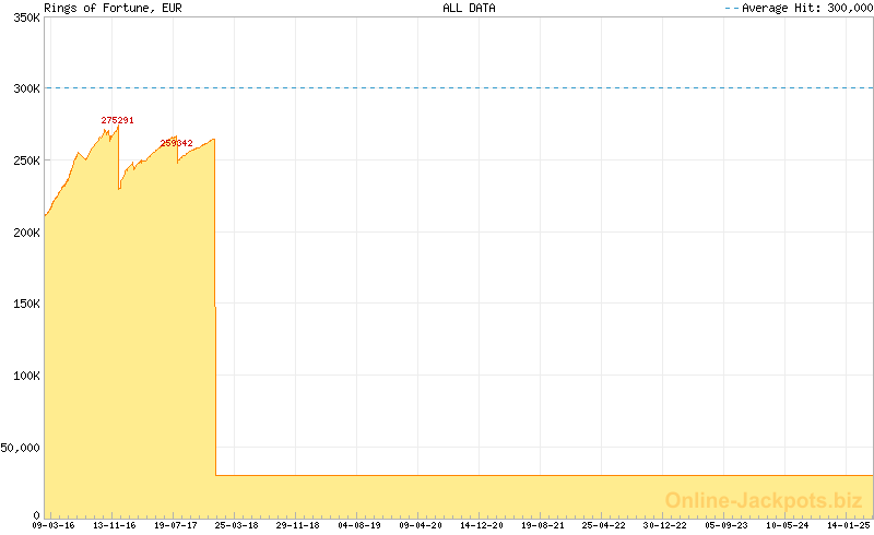 Rings of Fortune has a common progressive jackpot for all stakes and currencies. 5 Wizards symbols win you the jackpot if you land them in the Free Spins. 100% of the jackpot is paid out at the highest stake. A share of the progressive jackpot, relevant to the stake amount, is paid out for lower stakes.