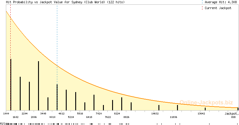 Sydney (Club World) Jackpot is a pooled progressive jackpot that is hit randomly. The jackpot can be won at random, on any paid spin. To increase your chances of winning the Sydney jackpot you need to increase your bets and play longer, providing the jackpot is really high to ensure you have the best odds.