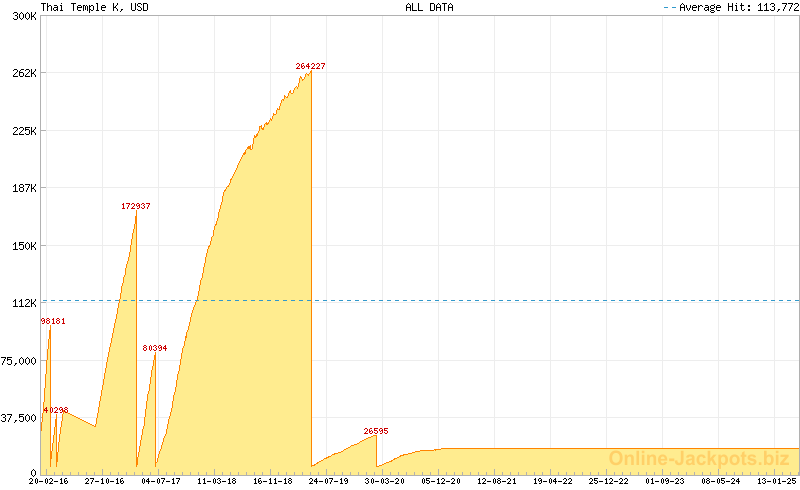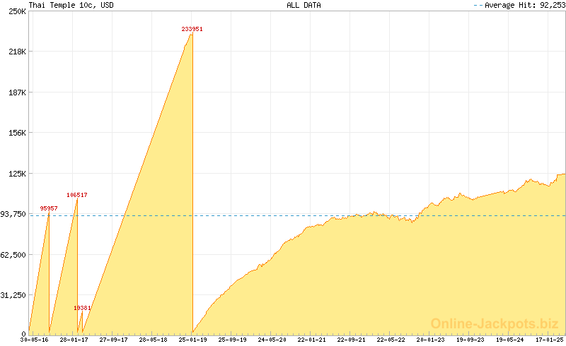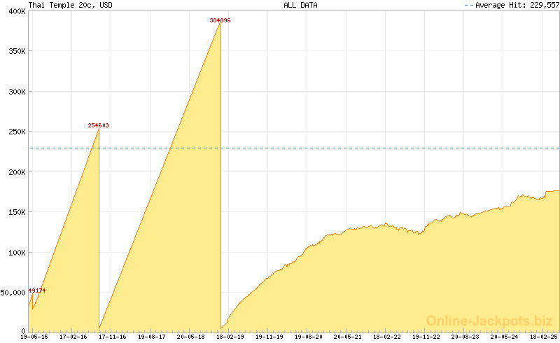 Thai Temple is a new 5 Reel video slot with 15 paylines and traditional fruit symbols and sevens on the reels. The slot offers different bet levels and only top 4 coin sizes ($0.10, $0.20, $0.40 & $1 x 15 paylines) qualify for a corresponding progressive jackpot.