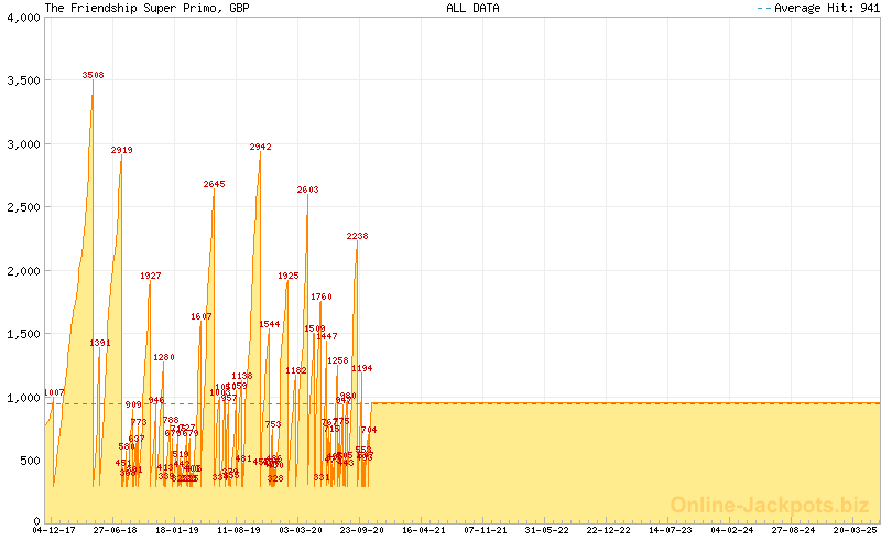 | Average Hits: | £941.32 (Super Primo) (71 hits) £695.14 (Mini Primo) (88 hits) |