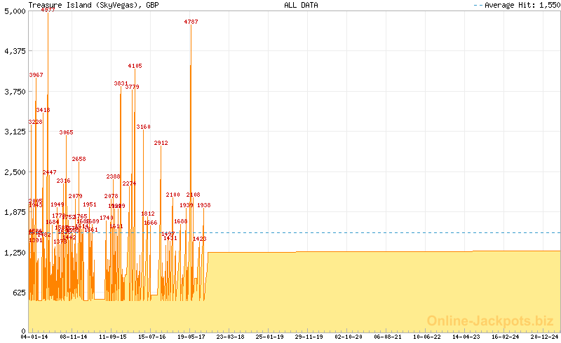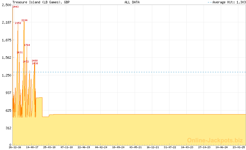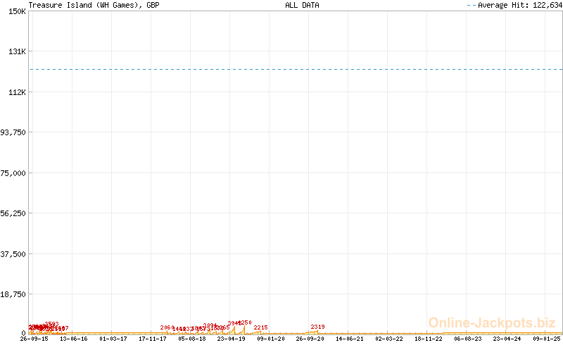 The WILD symbol substitutes for all symbols except for the Treasure Chest, Cannon and Jackpot symbols. WILDs will always substitute for the highest-paying symbol, therefore 3 WILDs will pay the same as 3 Treasure Island symbols (x100), 4 will pay the same as 4 Treasure Islands (x300), etc.