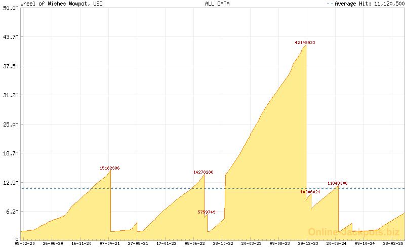 | Last Hits: | $2,169,234 on 2024-09-18 (Wheel of Wishes Wowpot) $220,395 on 2026-02-27 (Wheel of Wishes Major) $104 on 2026-03-01 (Wheel of Wishes Minor) |