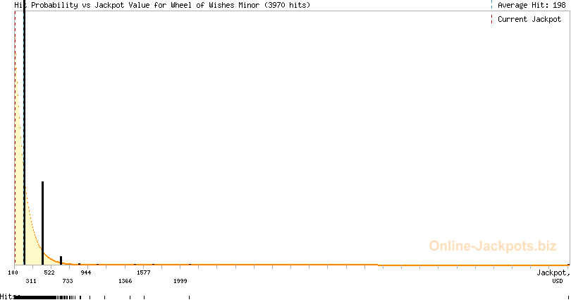 | Average Hits: | $11,120,500.77 (Wheel of Wishes Wowpot) (10 hits) $271,557.34 (Wheel of Wishes Major) (194 hits) $191.33 (Wheel of Wishes Minor) (4962 hits) |