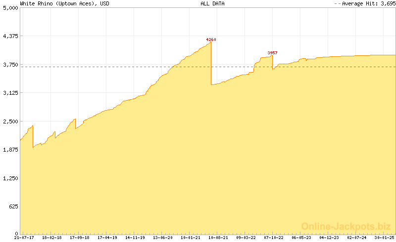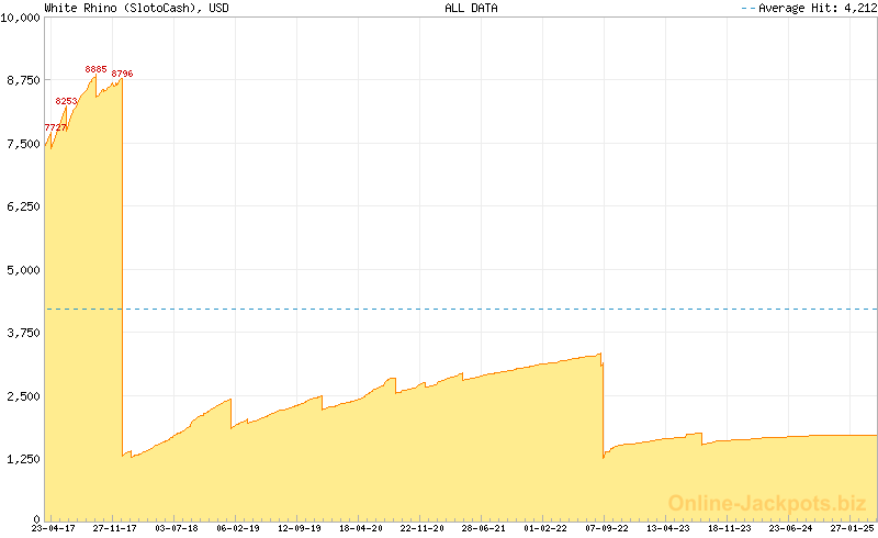 White Rhino is a 5-reel, 25 payline slot game with 2 random progressive jackpots and 3 free spin style features. The game with a particular jackpot should be played at the corresponding online casino (see links).