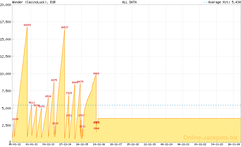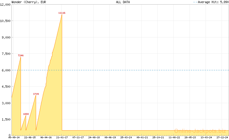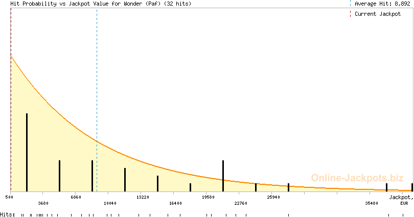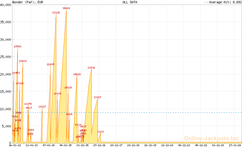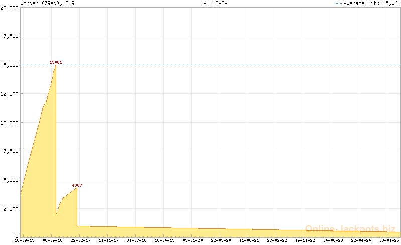 Wonder jackpot is offered at 3 different wonder series slots in a 5 reel, 30 payline format with Bonus Feature, free spins, Wild symbols and 2 progressive jackpots - Mega Wonder and Wonder. Wonder is the smallest jackpot in the series. See Mega Wonder review for charts and complete review of the top jackpot.