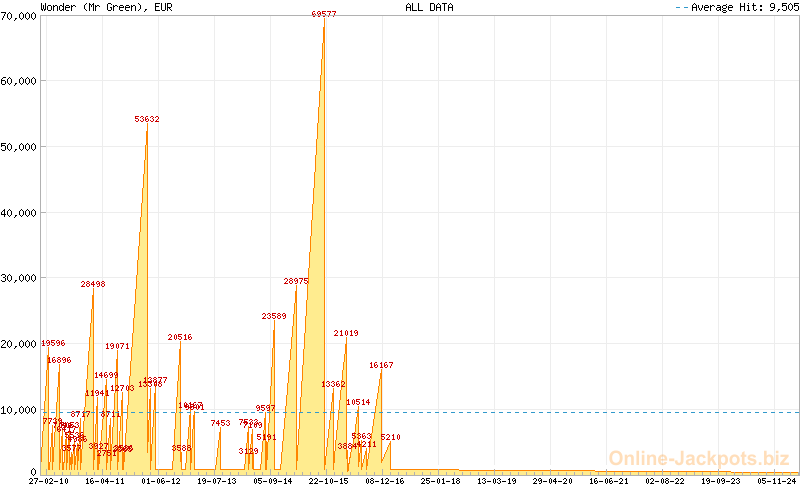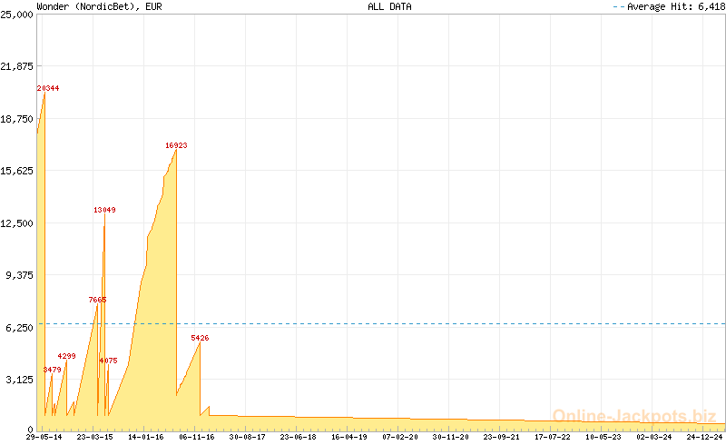 You win a Wonder Jackpot as the progressive prize when playing one of the 3 slot games. 5 jackpot star symbols will win you the Mega Wonder jackpot (biggest), while 4 stars deliver the Wonder jackpot.